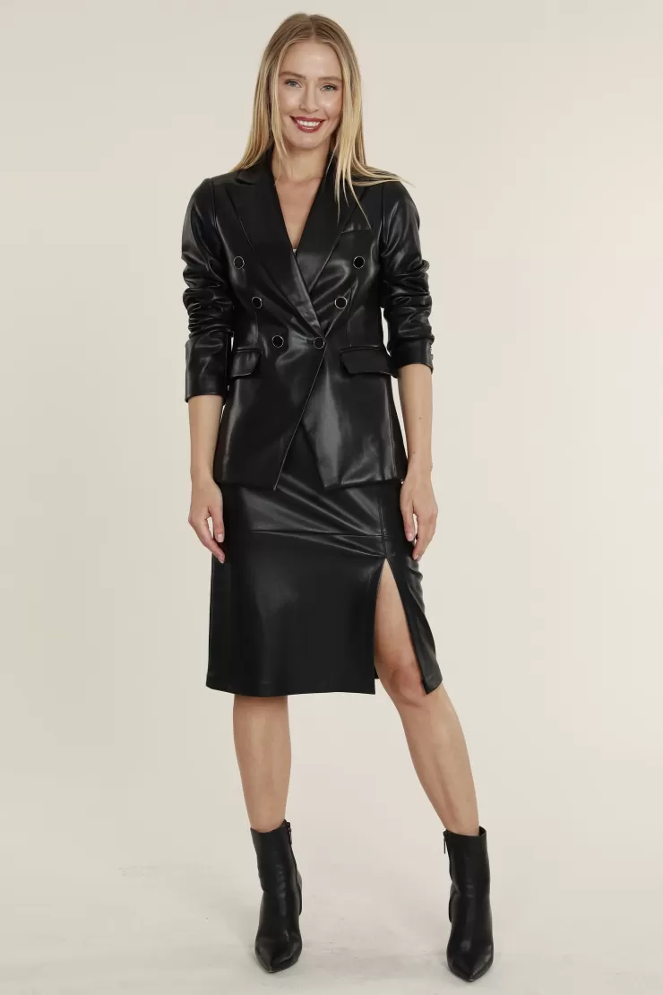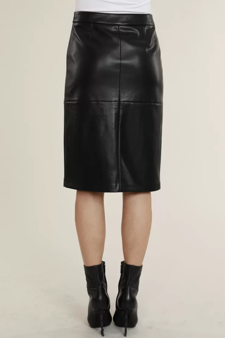 Dolce Cabo Vegan Leather Pencil Skirt with Slit in Black